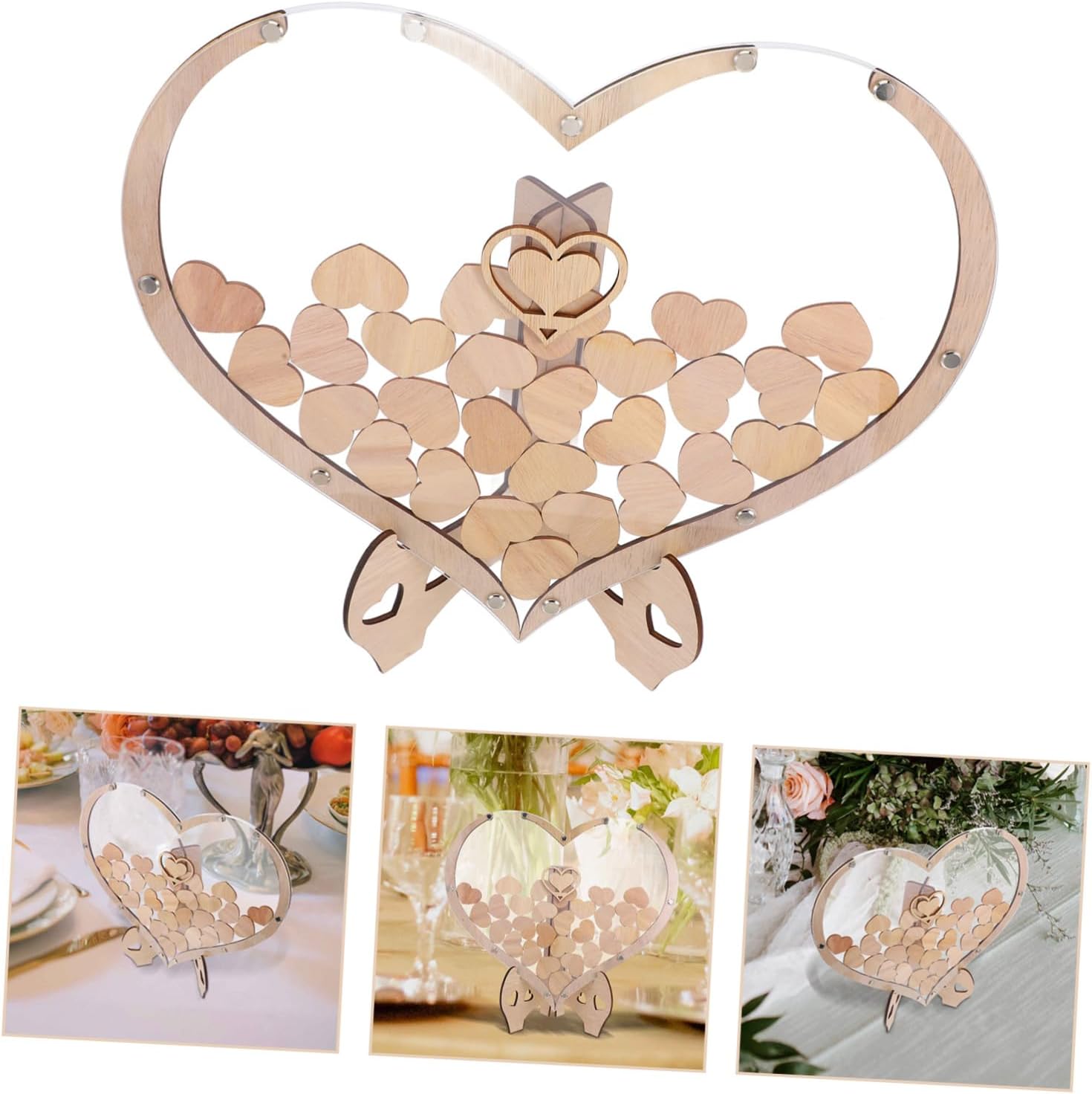 Package Include 80 x heart shape pieces 1 x base 1 x frame 2 x pens 1 x storage box Features -Unique heart shape: the heartshaped design adds a touch of romance and elegance, ideal for capturing heartfelt messages wooden heart guest book. -Size:38.00X36.00X12.00cm/14.93X14.15X4.72in heart decorations for valentines day - quality: each piece is carefully , ensuring a high level of detail and a beautiful, polished finish wooden wedding guest book. -Material:Wood, handmade guestbooks -Ideal for various events: suitable for weddings, anniversaries, and other celebrations, offering a memorable keepsake guest book wedding reception. -Product Info:Heart-shaped -Color:Light Yellow rustic wedding guest book -Dual purpose: serves as a guest book and a decorative piece, enhancing the aesthetic appeal of your event or home guest book for party. -Constructed from wood, this guest book is both practical and built to last custom guest book.Goods Informationwedding table decorations The finely crafted wooden hearts allow guests to leave their heartfelt messages, creating a memorable keepsake.rustic wedding guest book Our heart-shaped wedding guest book is a versatile piece that serves both as a guest book and a charming table decoration.guest book This guest book is nice for rustic-themed weddings and other celebrations, enhancing the overall decor