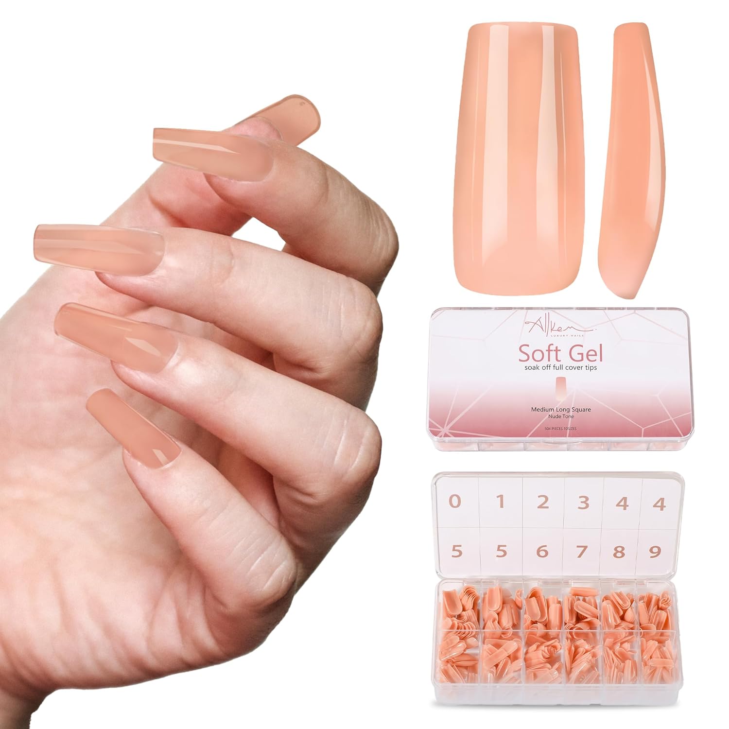 Why We recommend Allkem Nails: Get ready to step up your nail game with Allkem Press-On Long Ballerina Nails! Our nails are designed for easy application and long-lasting results. Say goodbye to messy nail polish and trips to the salon, and hello to beautiful, trendy nails in minutes. Our nails feature a stylish and trendy design that is perfect for any occasion. Whether you're going out with friends or attending a formal event, our nails will complement any outfit. Our high-quality materials provide a durable and long-lasting finish, ensuring that your nails look great for weeks. But our press-on nails aren't just about looking good - they also offer lasting benefits for your natural nails. Our nails protect your natural nails from damage, while also promoting healthy nail growth. Say goodbye to weak, brittle nails and hello to strong, healthy nails with Allkem Press-On Long Ballerina Nails. Order now and experience the convenience and benefits of Allkem Press-On Long Ballerina Nails!