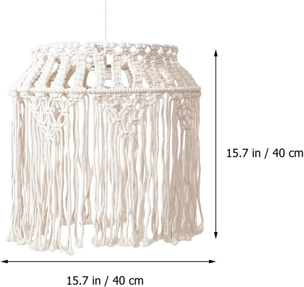Package Include 1 x lampshade Features -Material: Cotton rope -Size: 40.00X40.00X10.00cm/15.72X15.72X3.93 in. -Product Info:Bohemian lampshade -Color: Beige - Our woven lampshade will win your favors, easily upgrade the look of your ceiling light or pendant lamp lamp shade. - With fine workmanship, it is durable and not easy to break, and provide a long serving time woven lamp cover. - It is simple in use and practical in use, give you a pleasant using experience ceiling lamp shade. - A charming decor for bedroom, study room, dining room, living room, kitchen, hallway, etc woven lamp shade. - When the light is on, the light comes through the lamp shade, creating a beautiful view woven light shade.Goods Descriptionchandelier lamp shade You can give it as a gift for your friends or family on housewarming, Christmas, new year, Thanksgiving, etc.woven lampshade A quick and to turn your boring ceiling light to an eye catching look.macrame lampshade Featuring woven design, this light shade can well embellish your pendant light or ceiling lamp