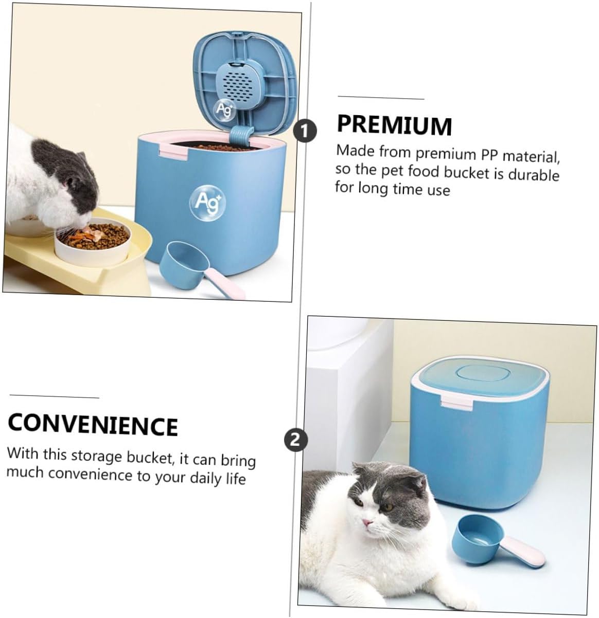 Package List 1 x food bucket Characteristics -Material: PP -Product Info:Grain storage barrel -Size(11L): About 28.00X25.00X23.50cm/11.00X9.82X9.24inch -Color: Blue -The whole appearance design of product is simple and generous for your daily use Pet Food Container. -The perfect gift for family and friends who , they will like it very much Large Capacity Bucket. -Durable and solid material is well made, fall resistance and a strong bearing capacity. -With large storage capacity, it can help you store large quantity of pet food one time Storage Case for Pet Food. -Keep dry dog food or cat food in this airtight food storage container, which is very practical Dog Food Storage Bin.Goods DescriptionPet Food Container Our product will be a wise choice.Storage Case for Pet Food Adoption of sturdy PP materials, reliable and not easy to break.Dog Food Storage Bin Do you have a lovely pet cat or dog? Do you wanna a pet food storage bucket? If your answer is yes, then your search is over