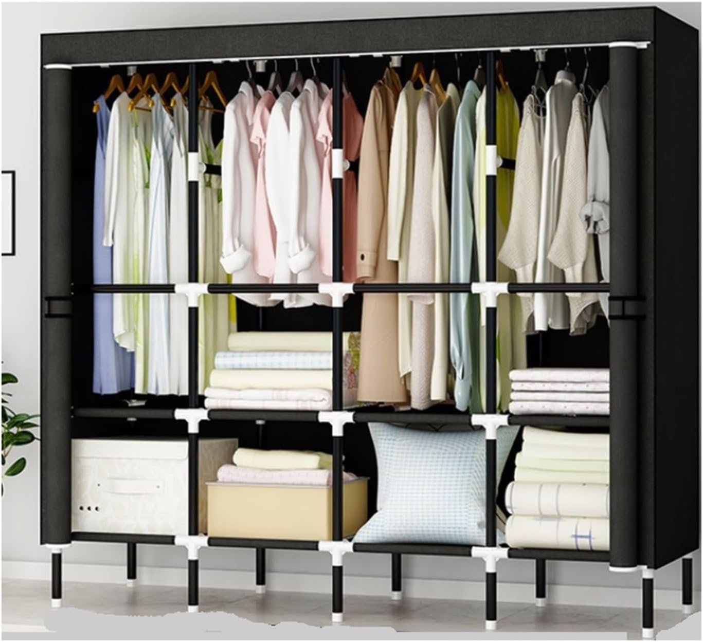 Easy Assembly: Quickly and easily set up the portable wardrobe to hang clothes, no tools required, smooth assembly, providing you with a reliable and convenient clothing storage solution.Product name: WardrobeMaterial: fabrics ,Steel pipePackage Contents:1 x Portable Closet1 x Cloth cover No other exhibits includedSpacious Wardrobe: Carefully selected to properly store your clothes, it can meet your needs.Multi-purpose: It can be used in bedrooms, laundry rooms, living rooms, bathrooms, utility rooms, garages, entryways, etc. It is an ideal choice for storing clothes, bedding, bags, shoes and daily necessities.