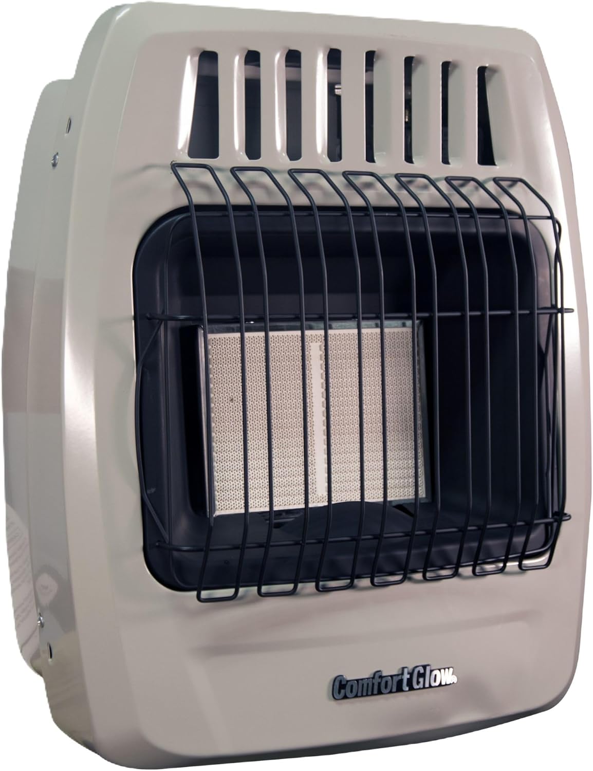 12K DUAL FUEL VENTFREE GAS WALL HEATER: Kozy World's dual fuel, 2 plaque, 12,000 BTU, thermostat controlled heater can be used with Propane (LP) or Natural Gas (NG), and will heat a room up to 500 sq. feet. Our high quality infrared ceramic plaques radiate soothing, direct, immediate heat. This heater is 99 per cent fuel efficient with no duct work or electricity needed, and comes with built in oxygen depletion sensor.