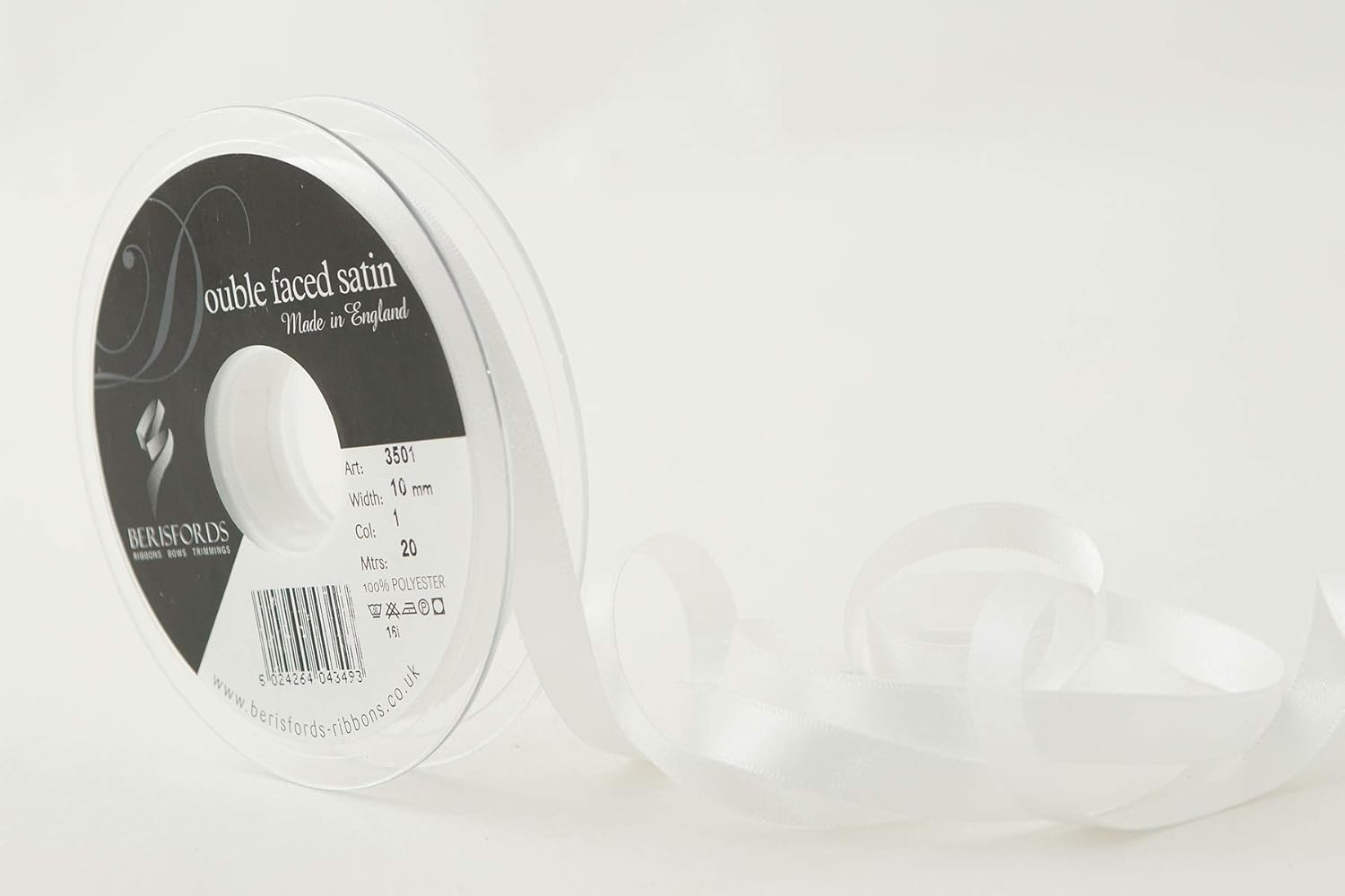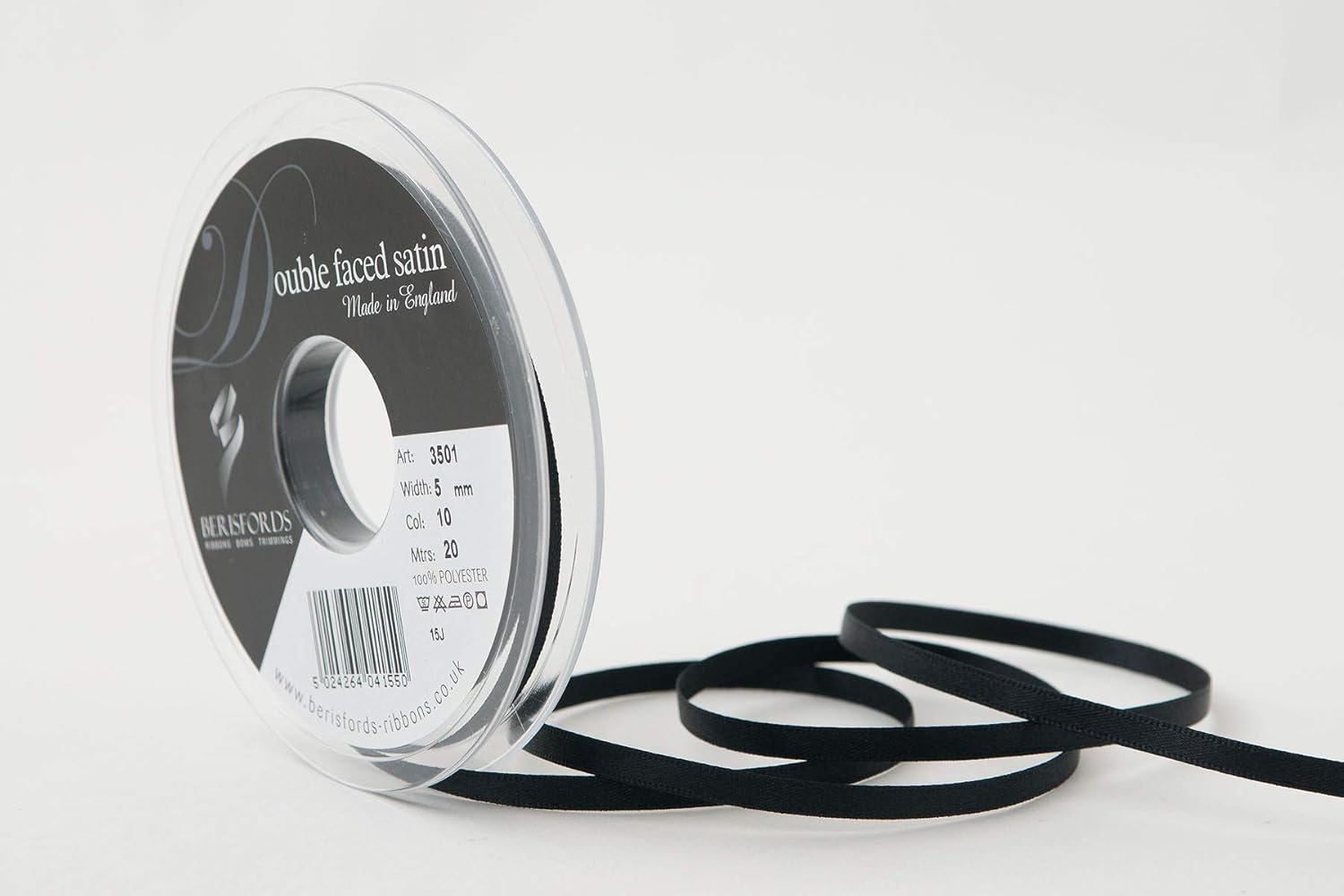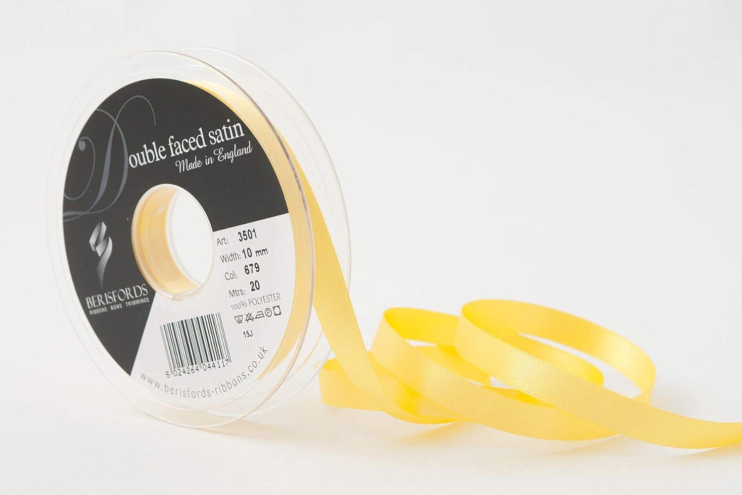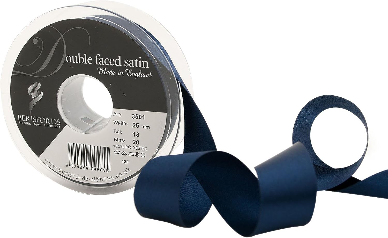 Product Description A classic and versatile ribbon made from 100 percent polyester yarn. Berisfords double faced satin ribbon is the core product in the essentials collection. Berisfords ribbons are designed and manufactured in Great Britain. Your guarantee of quality and style. Set Contains: 1 x Ribbon Roll