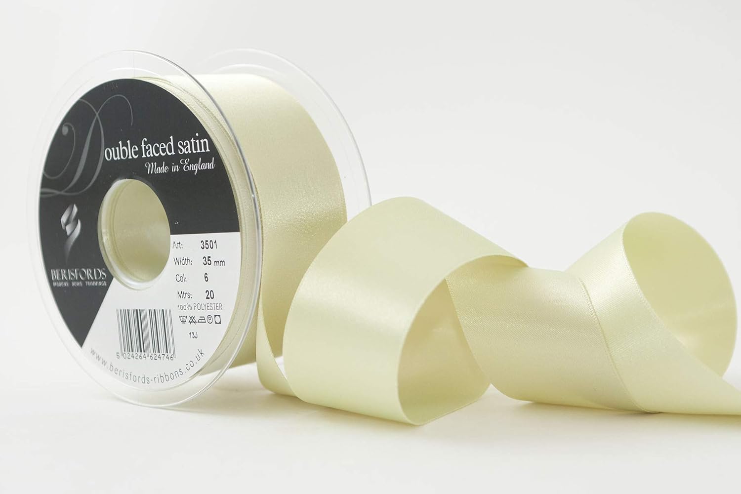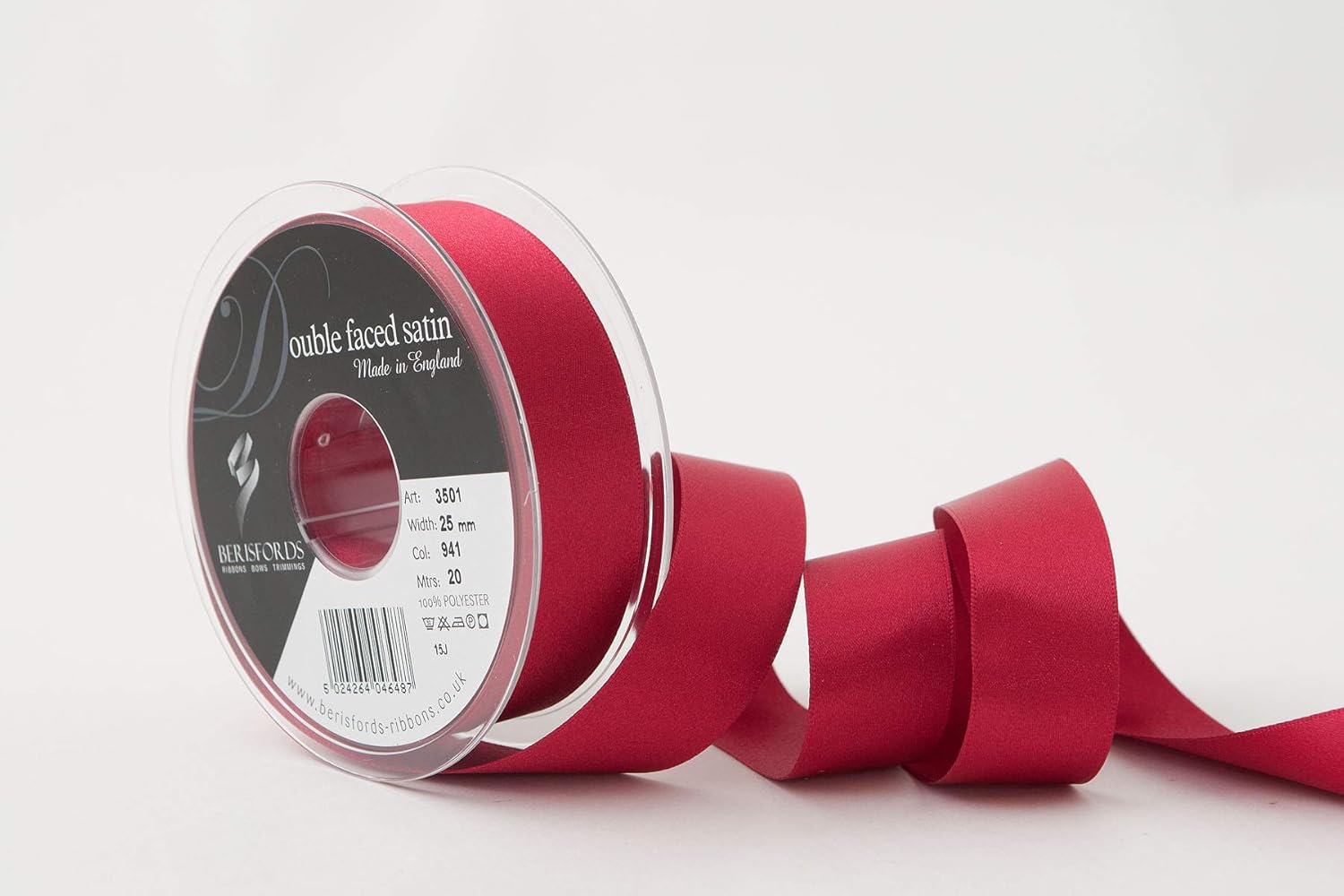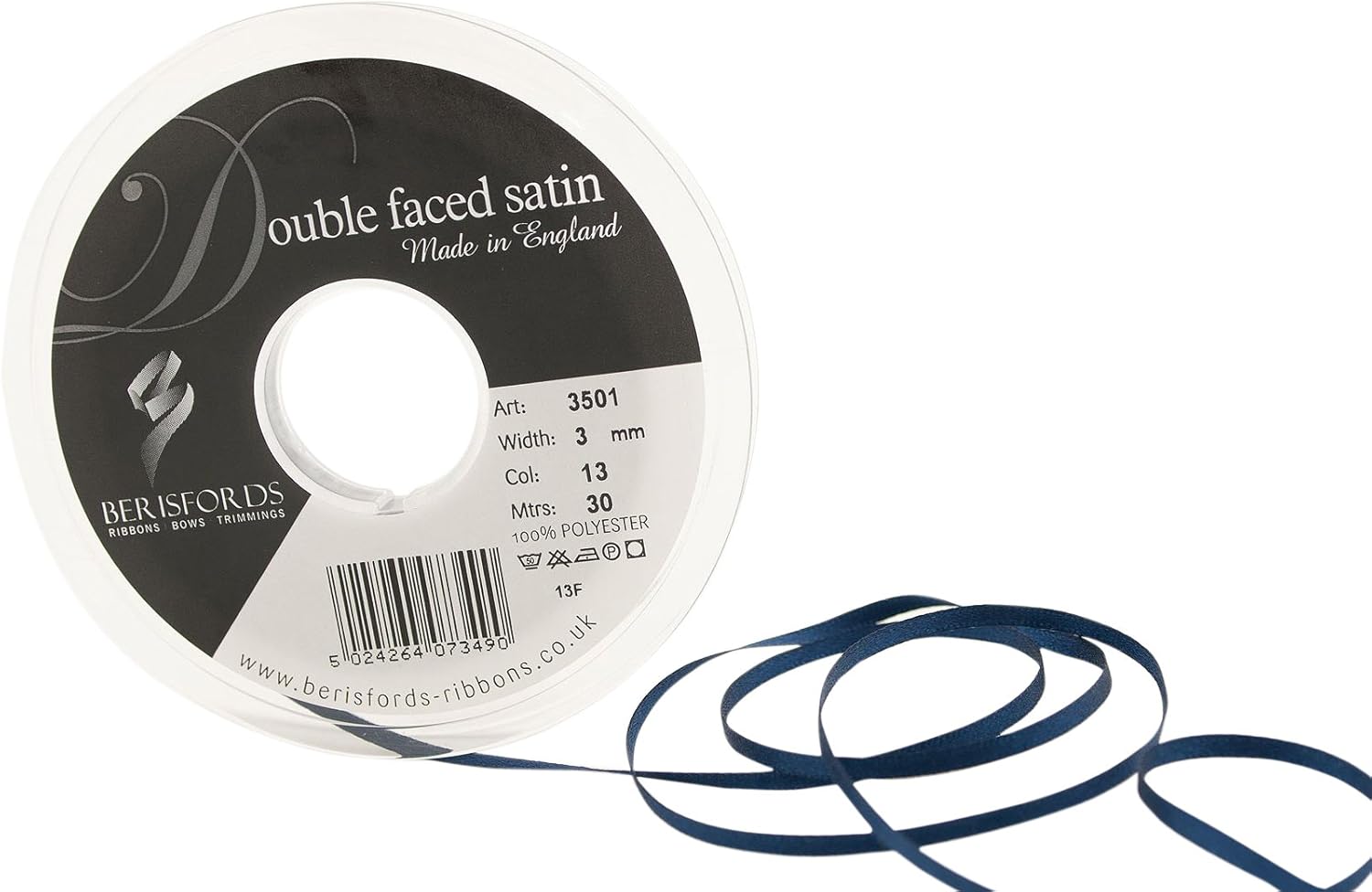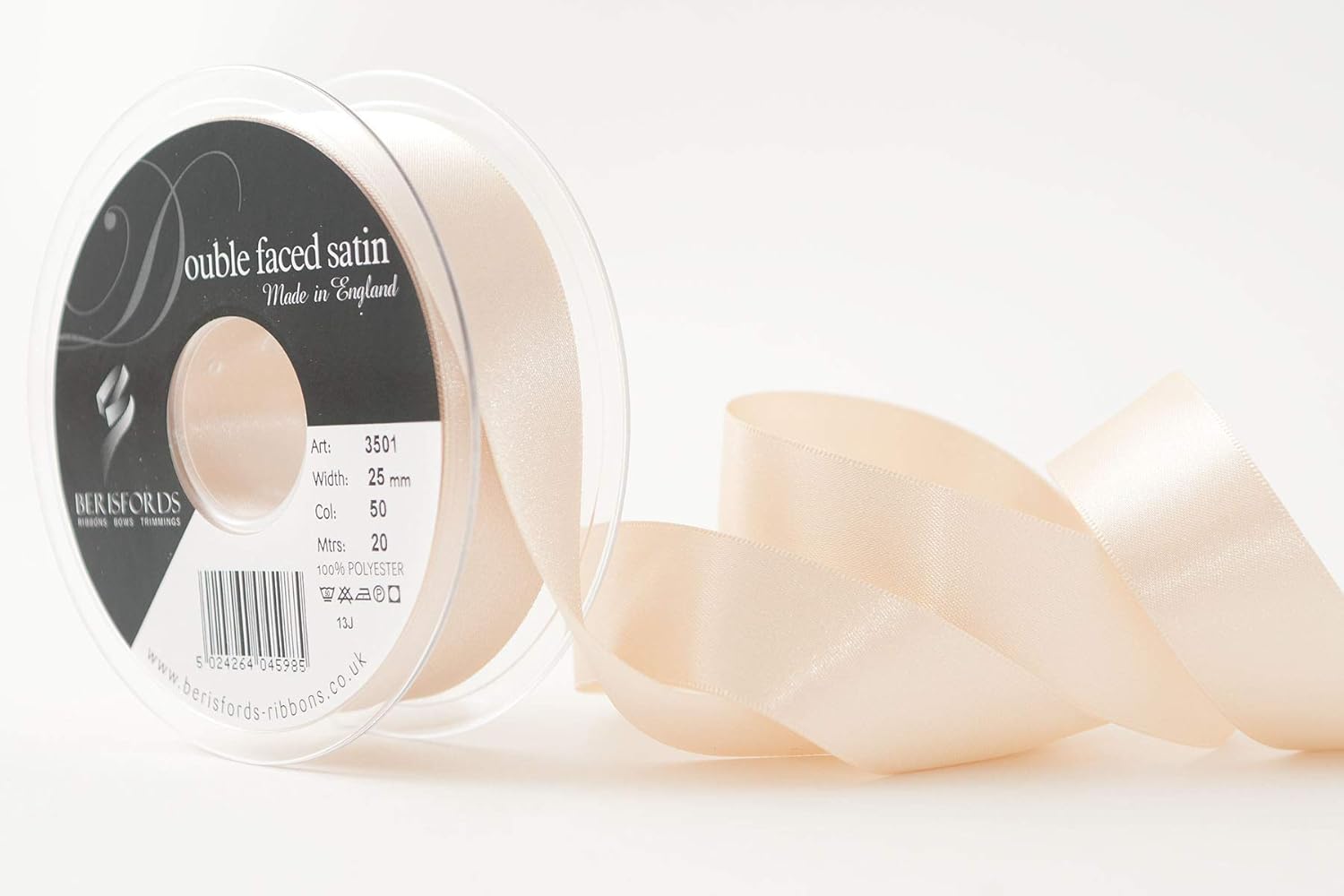 Product Description A classic and versatile ribbon made from 100 percent polyester yarn. Berisfords double faced satin ribbon is the core product in the essentials collection. Berisfords ribbons are designed and manufactured in Great Britain. Your guarantee of quality and style. Set Contains: 1 x Ribbon Roll