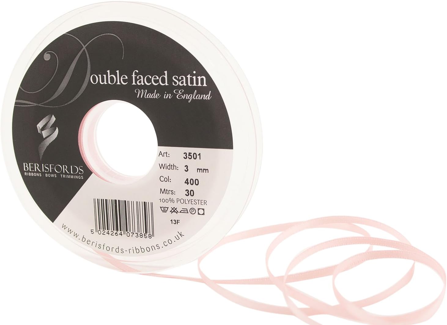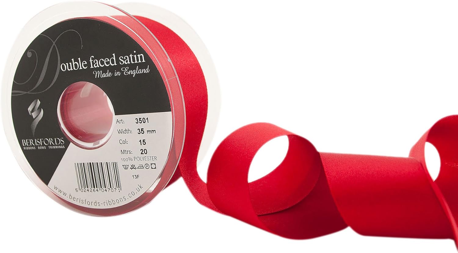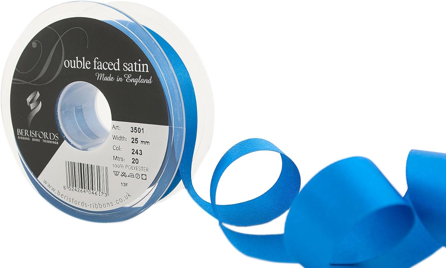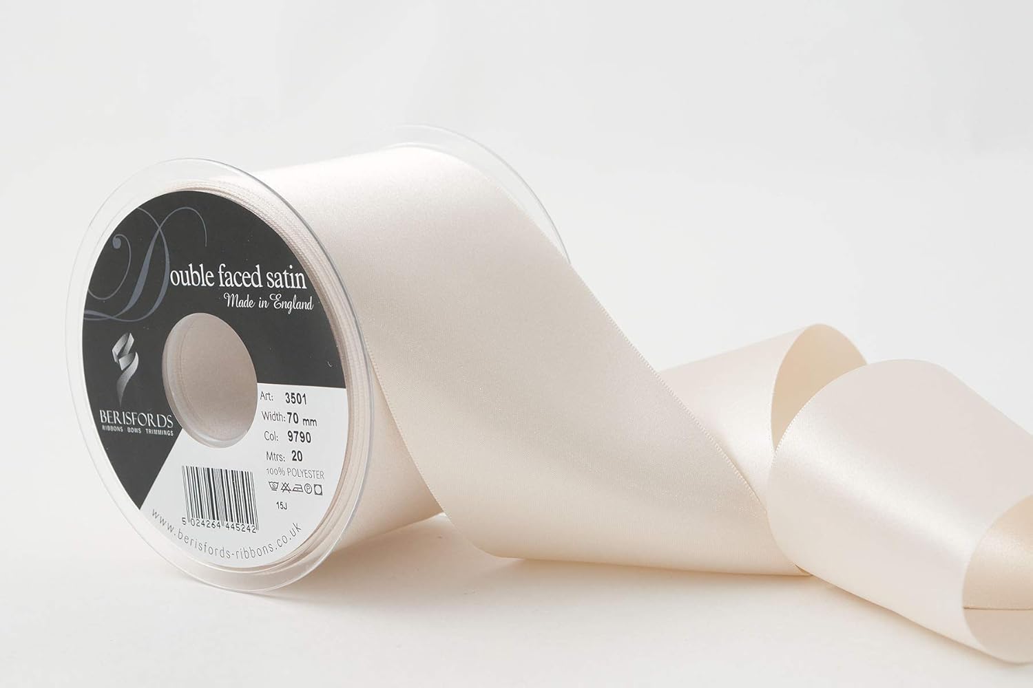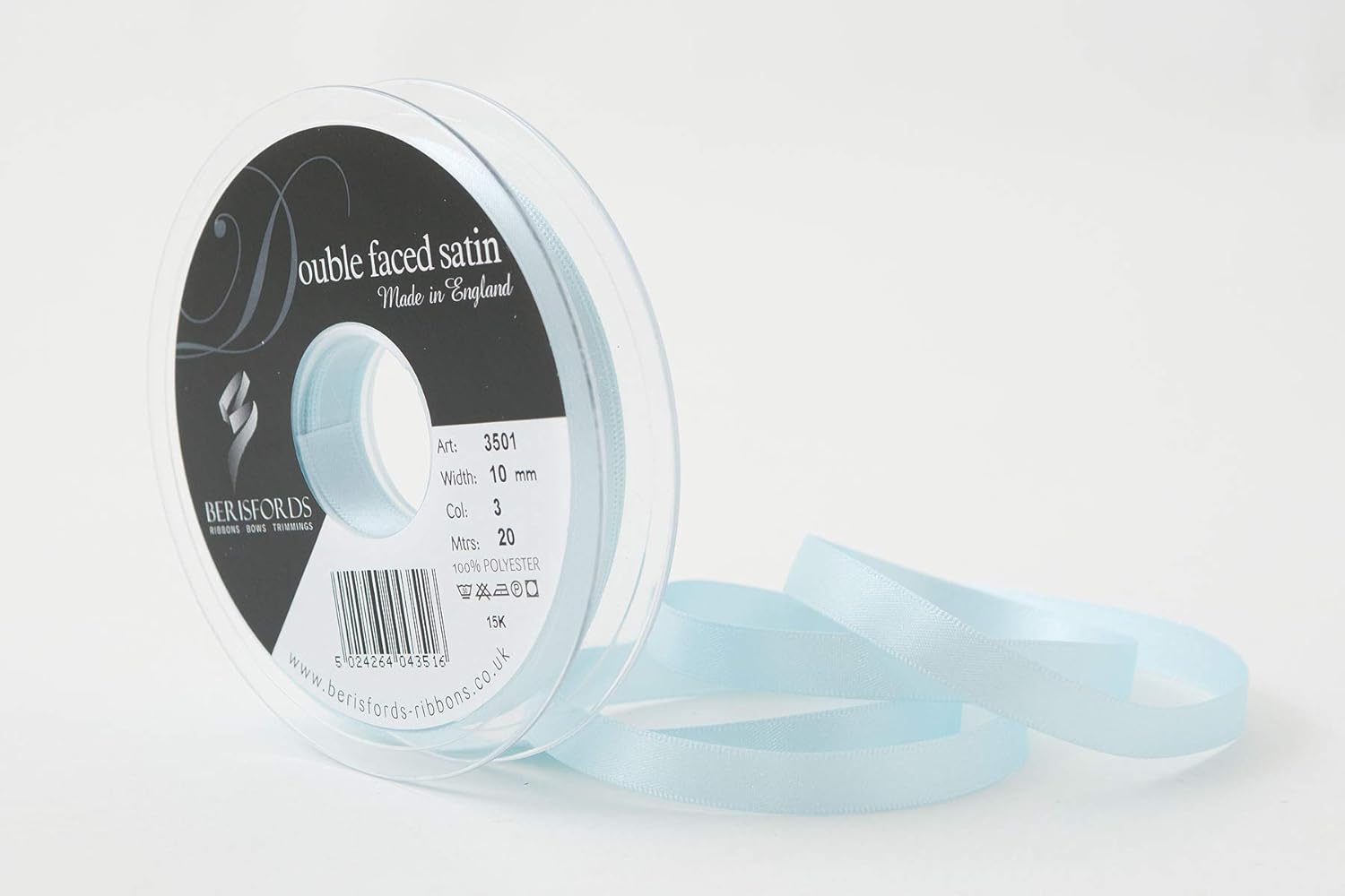 Product Description A classic and versatile ribbon made from 100 percent polyester yarn. Berisfords double faced satin ribbon is the core product in the essentials collection. Berisfords ribbons are designed and manufactured in Great Britain. Your guarantee of quality and style. Set Contains: 1 x Ribbon Roll