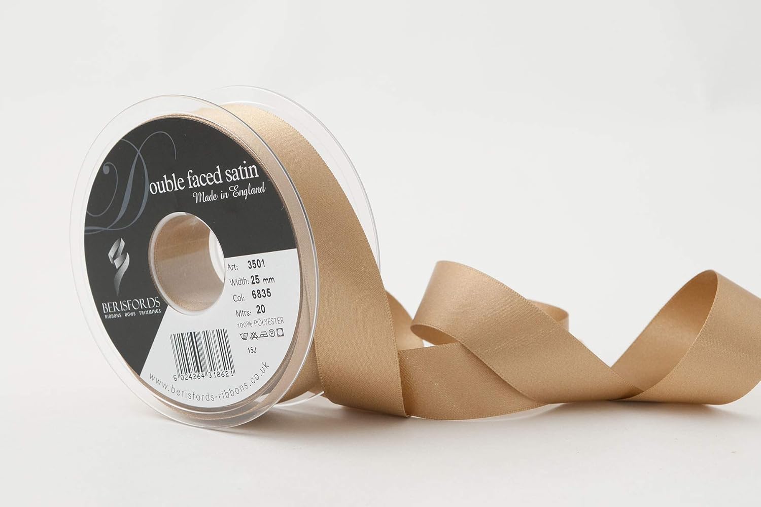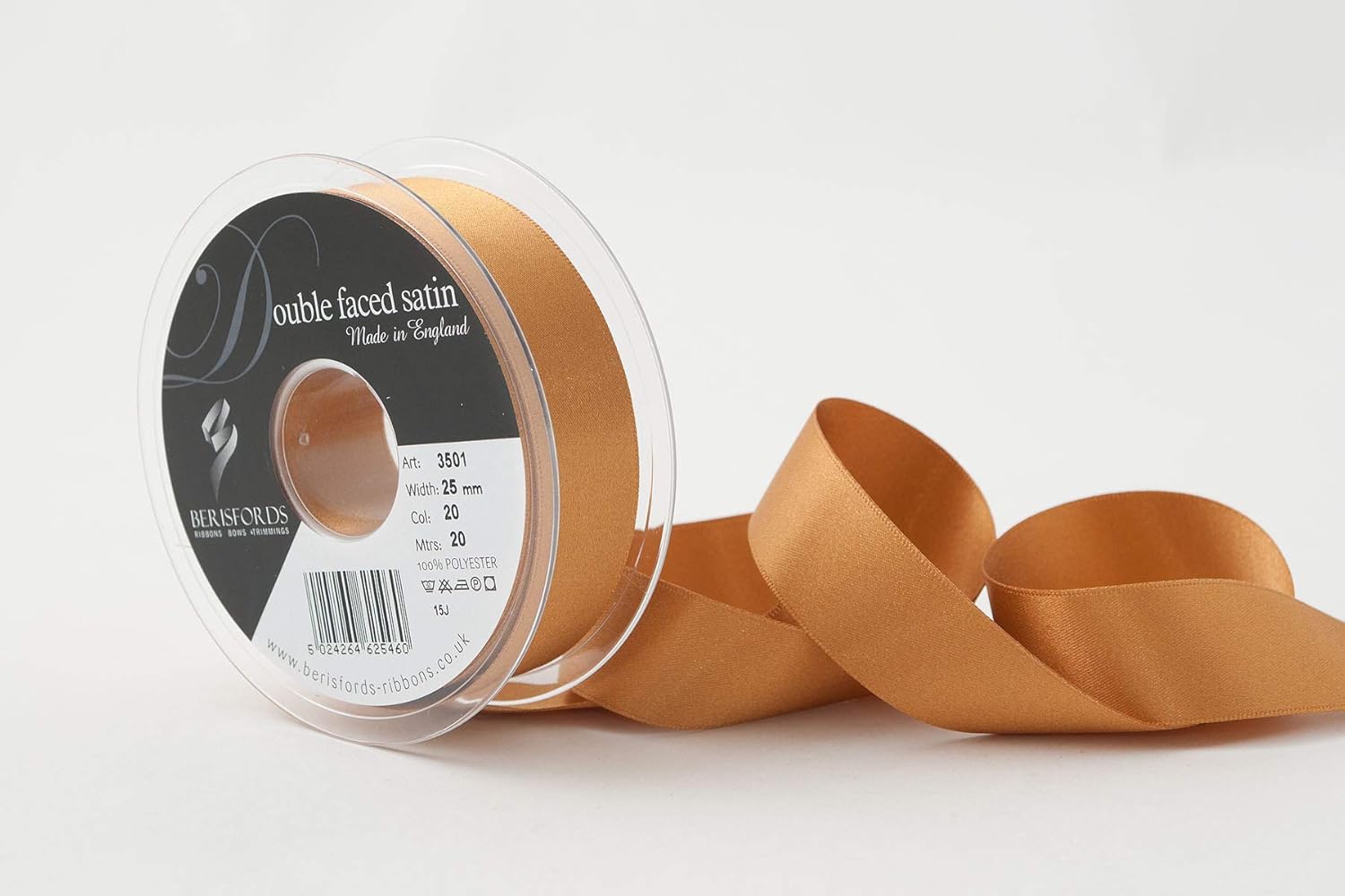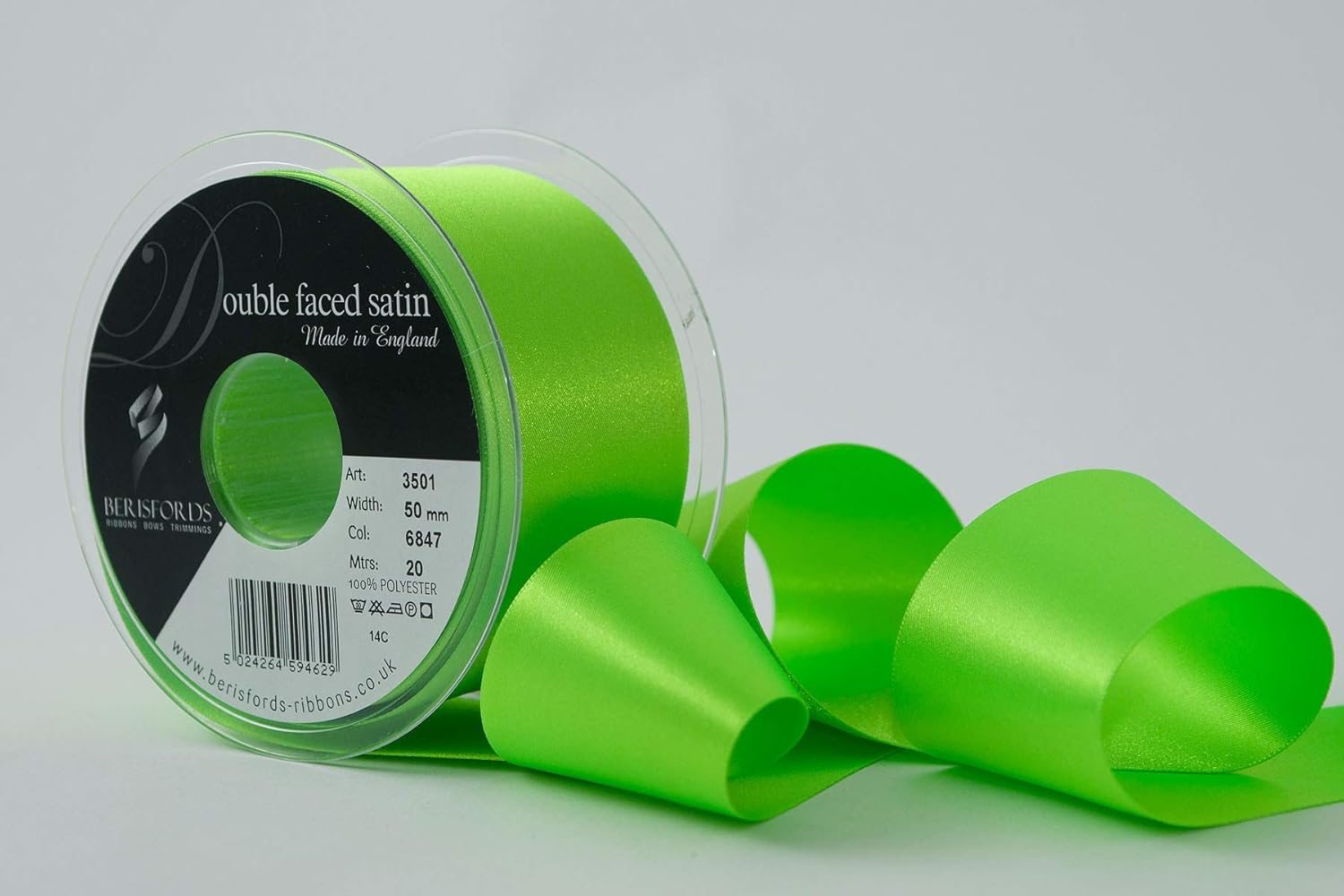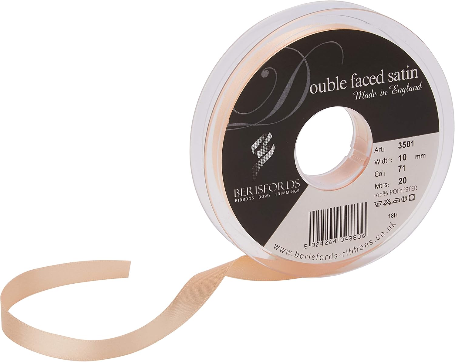 Product Description A classic and versatile ribbon made from 100 percent polyester yarn. Berisfords double faced satin ribbon is the core product in the essentials collection. Berisfords ribbons are designed and manufactured in Great Britain. Your guarantee of quality and style. Set Contains: 1 x Ribbon Roll