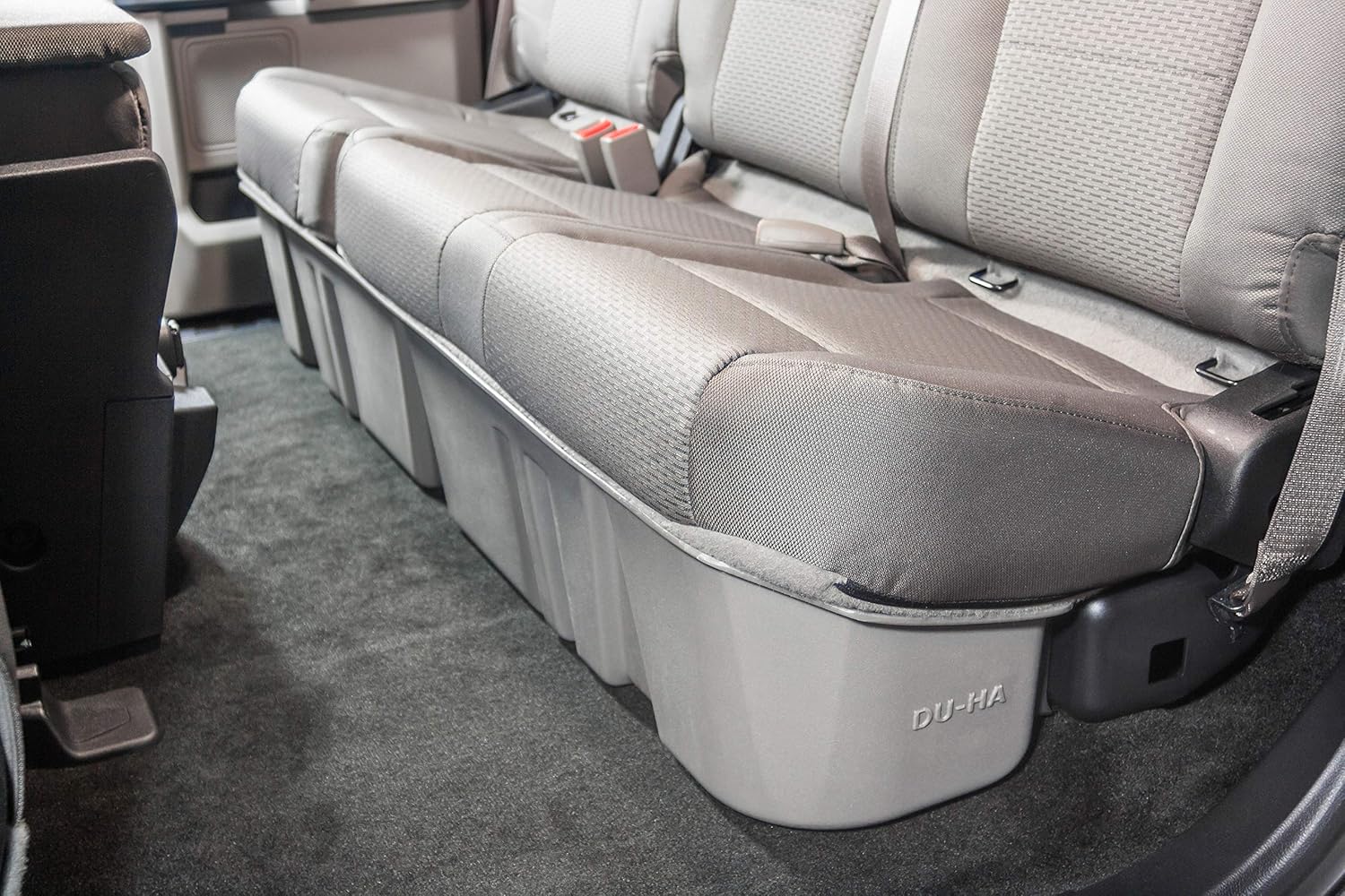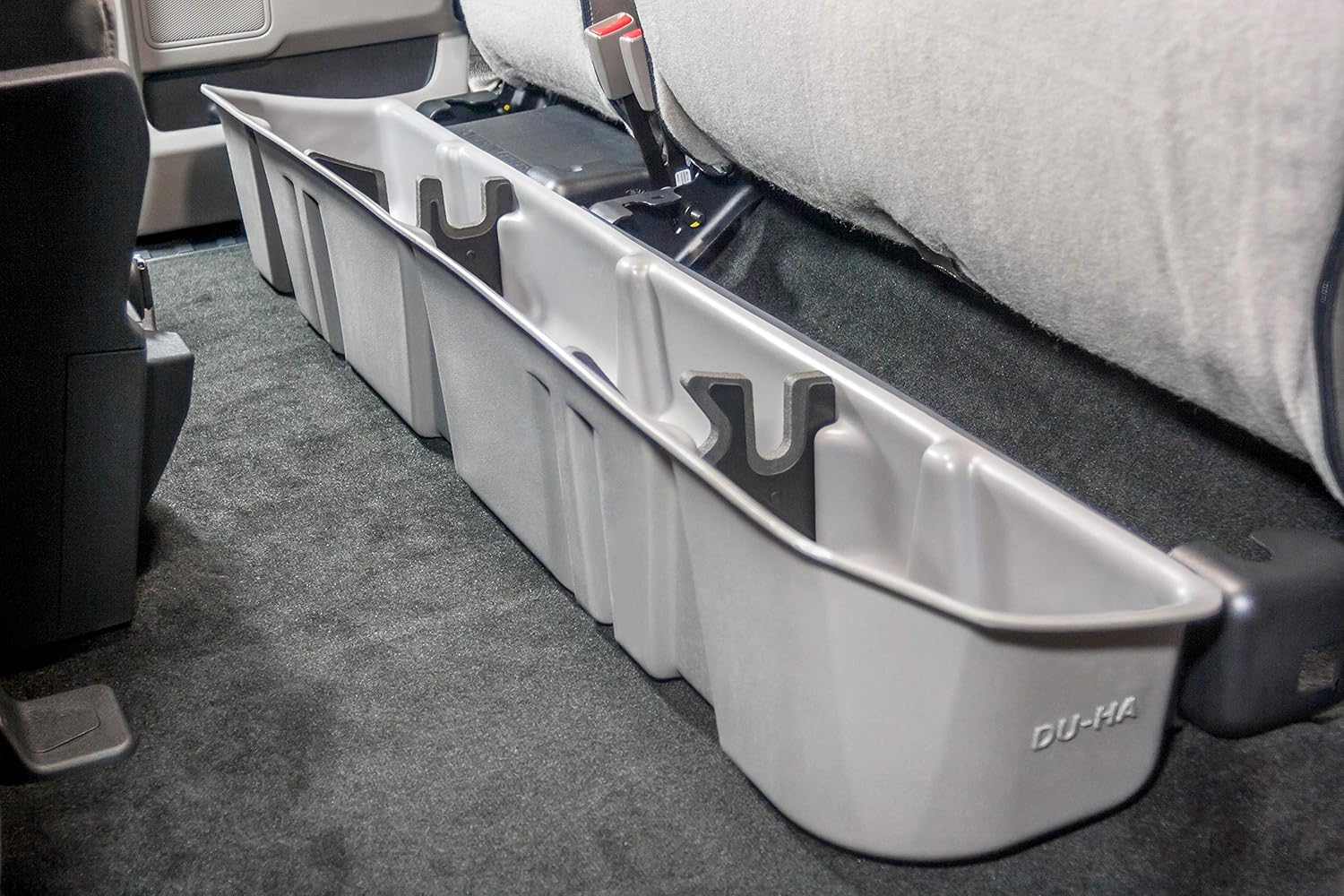 Whether you're a contractor, sports enthusiast, or anyone who values organized and secure storage, the DU-HA Underseat Storage System is the ultimate underseat truck storage solution for seamless truck storage integration. This innovative truck storage system maximizes space, enhances organization, and keeps your valuables, tools, and gear safe and secure. Proudly roto-molded and Made in the USA, the DU-HA Underseat Storage System comes with a lifetime warranty, reflecting the manufacturer's confidence in its quality and durability. The DU-HA Underseat Storage System features a durable, heavy-duty roto-molded construction which doesn’t allow for flexing and bending. It also includes an easily removable two-piece rack/organizer. You can also remove the dividers to store larger items. The DU-HA Underseat Storage System seamlessly integrates into your truck's interior, providing a factory-like appearance. It's make/model-specific fit guarantees optimal use of available space without taking up legroom. Elevate the organization and security of your truck's interior with this reliable and purpose-built underseat storage system.