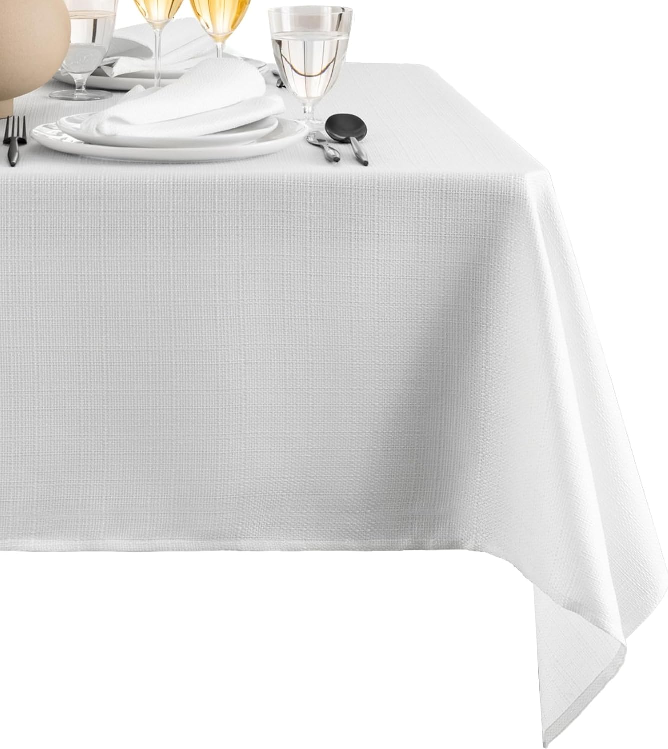 The Elrene Home Fashions Laurel Solid Textured Water- and Stain-Resistant Tablecloth features a luxe textured weave in an elegant palette of neutral shades, making it ideal for every decor style. The classic look and versatile styling potential make this oversized tablecloth a favorite for casual brunches, seasonal gatherings, formal holiday events and celebrations, and even everyday dining.Made from high-quality 100% polyester for a beautiful drape, our heavyweight fabric features a water-resistant, stain-resistant, and fade-resistant finish to protect your table from scratches and accidental stains and spills. The fabric easily wipes clean with a damp cloth or sponge. The artfully hemmed edges add a tailored, finished look to modern and traditional table settings while preventing wear and tear. This refined tablecloth is available in a large selection of sizes and shapes, including rectangle, oval, and round, so you are sure to find the perfect fit for your everyday dining and year-round entertaining needs.This tablecloth is easy to care for as it is machine washable and dryer-safe for effortless upkeep. For a complete look, pair your tablecloth with our luxury table pad and matching Laurel solid textured napkins.