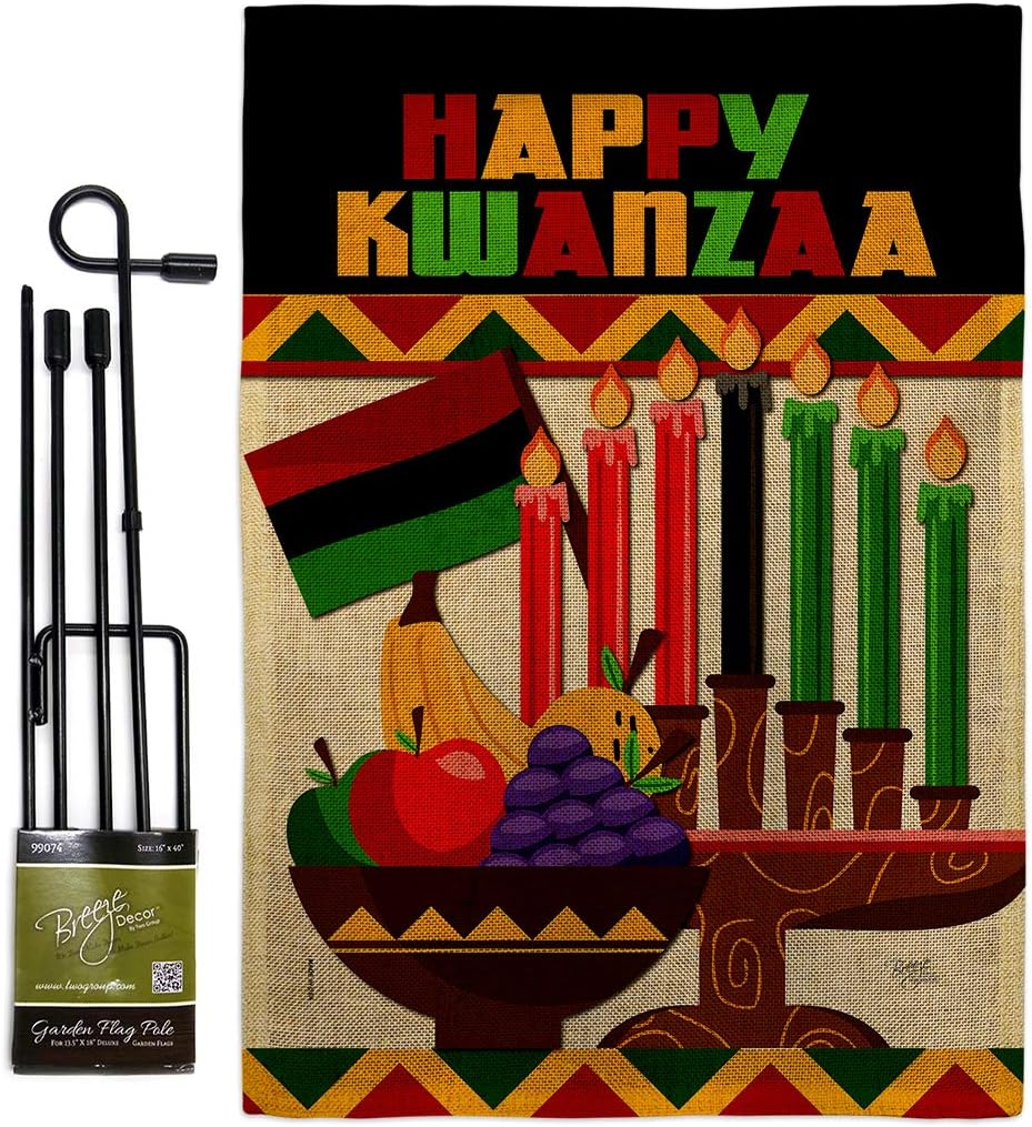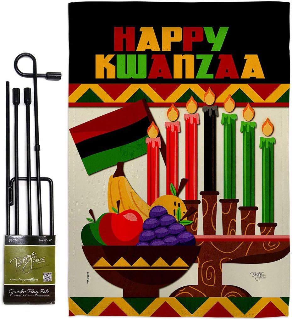 Kwanzaa Beautiful Mini Garden Flag with Metal Garden Banner Pole Stand - Complete Set with Fansy Wall Bracket - 12" x 16" Power Coated Metal Flag HolderBreeze Decor have variety of Garden Flag Set for all occasions. Uniquely design for hanging indoor or outdoor use. We are committed to offering you exceptional values. Our customers enjoy displaying our Garden Flag Set for longer periods. Specification: Theme: Kwanzaa Size: Garden Flag Set 13" x 18.5" Size: Metal Fansy Wall Bracket Print: Double-Sided Readable: Readable Single Side Material: Weather Resistant Polyester 300 D Stitching: Double Stitched Display: Vertical Hang Type: Sleeve Artist: Theodore Porter Special Features: Origin: Made In USAPackage Include: 1 pc x Mini Garden Flag 13" x 18.5" 1 pc x Metal Yard Banner HardwareFor more than a decade, we’ve been dedicated to manufacturing flags with no comparison in quality and beautiful designs. Our flags are made with our Pro Guard material that is soft to the touch and designs can be read correctly on the flag. A feature that our customers will love. We are committed to using eco-friendly inks that won’t leave a foot print in our environment. MPN: BD-KW-GS-114236-IP-P3-03-S-US20-BD 14236 64236