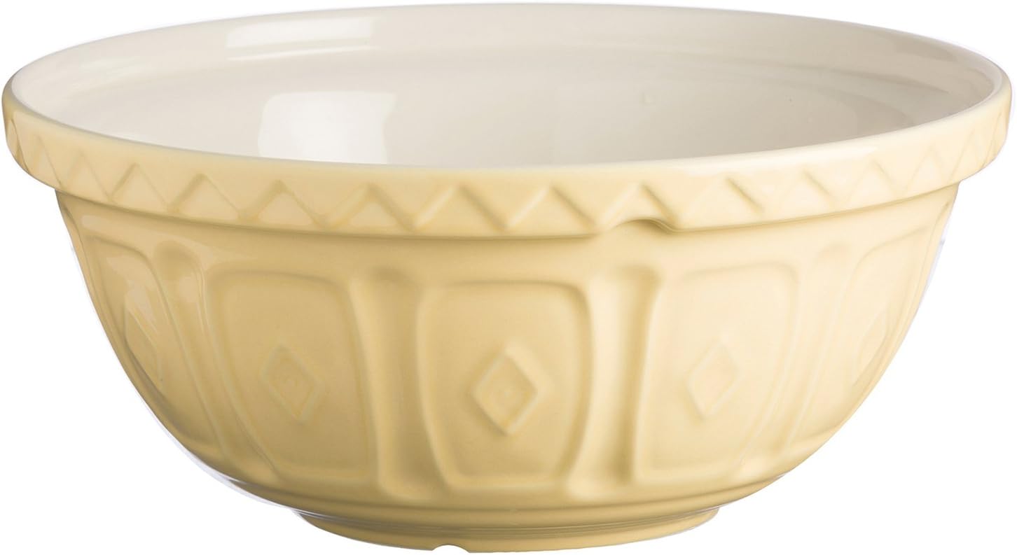 Stir some colour into your kitchen with the Mason Cash colour mix mixing bowl range. The S24 (24cm) 2 litre mixing bowl retains the charm of classics whilst bringing a bright, vibrant palette to any kitchen. Made from chip resistant earthenware, the bowl counters the tendency to move during manual mixing and the patterned exterior helps grip the bowl
