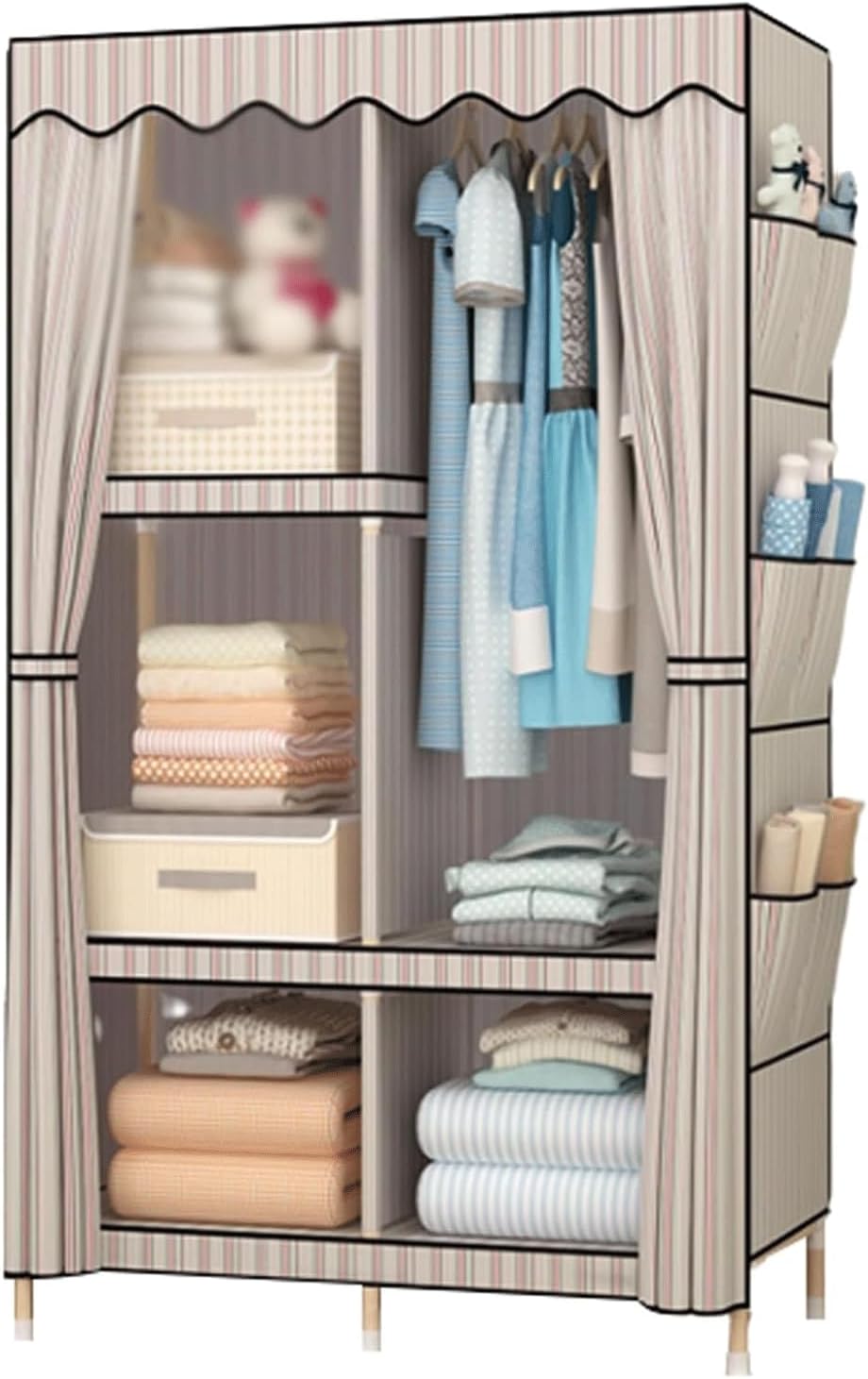 Say goodbye to clutter: This closet has various storage sections, it can be placed in various small spaces, saving you time and space. It helps you keep your clothes and accessories organized, so you can find what you need when you need it.Feature:our wardrobe it provides super load capability to ensure sturdier and more stable, not be bent easily, will prove to be sturdy and works for years.That creates a spacious space for for bedroom,to meet your long term and all aspect storage need.product name: closet/portable closet/clothes closet/portable closets/wardrobe closet/portable wardrobeCondition: 100% brand newProduct Color:white 1,white 2,pink 1,pink 2,green 1,green 2,brown 1,striped,redProduct Material:Wood, polyester cottonProduct Size:87x45x167cm/34x18x66in(LxWxH)Product Weight:7kg/15lbFurniture structure: frame structurePacking list: 1 X closets