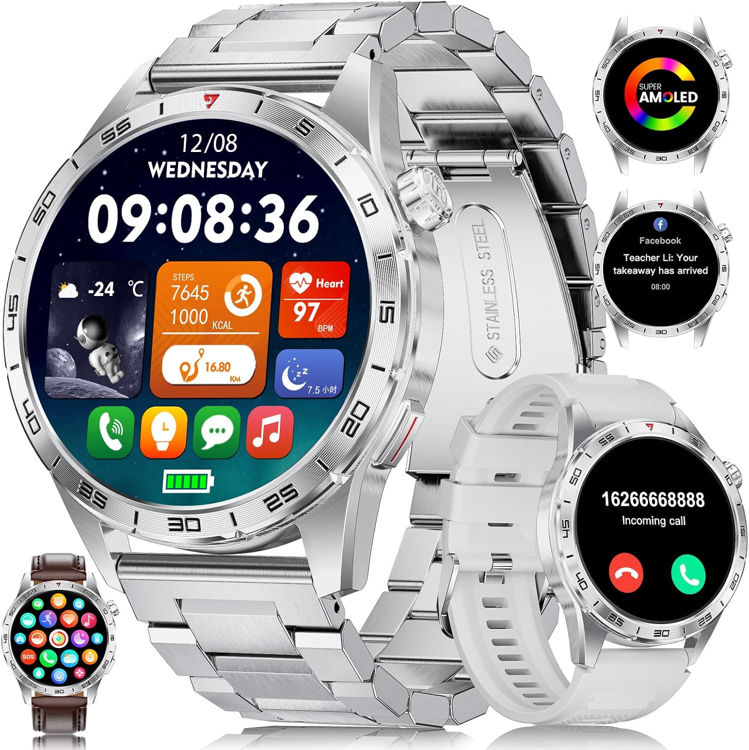 Smartwatch, Stainless Steel Strap, Silicone Strap, Leather Strap, Charging Cable |