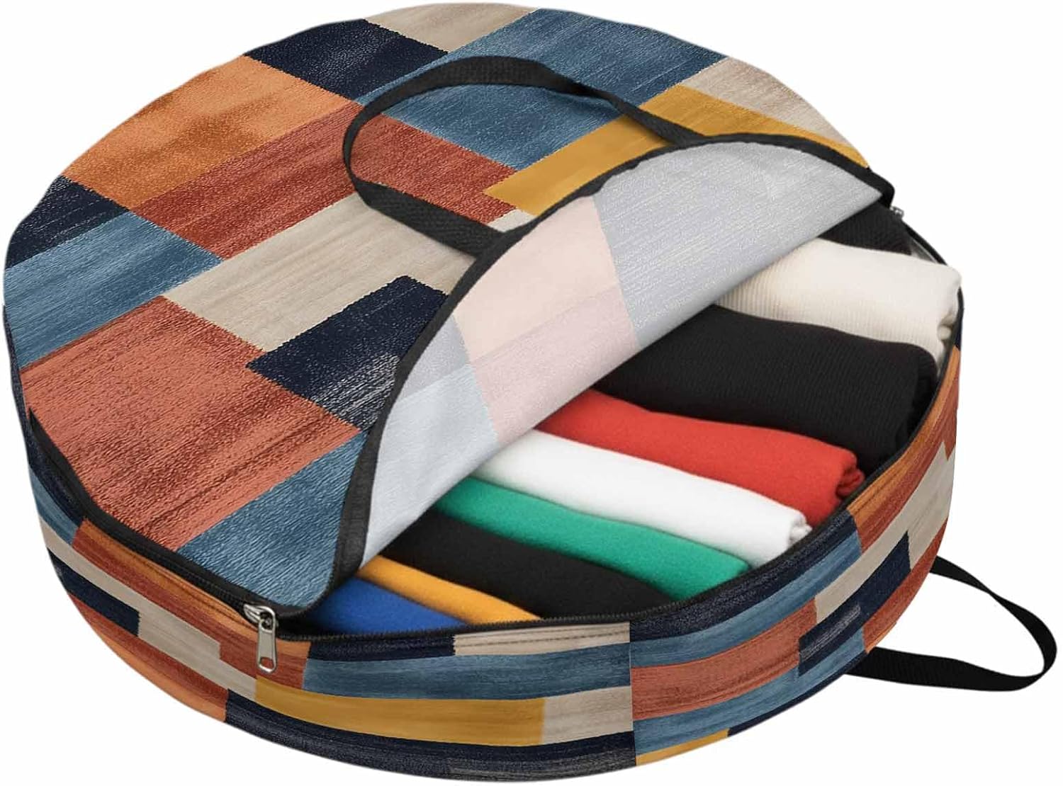 Reclaim Your Closet Space with the Round Storage Solution! Material: polyester Diameters: 24 inch, 30 inch, 36 inch Depth: 7 inches Package Includes: Round Storage Bag One Bag, Endless Possibilities: Whether you are swapping out your summer wardrobe, moving into a new dorm, or packing away holiday decorations, this bag has you covered. The circular design is uniquely suited for: Bedding: Comforters, quilts, sheet sets, and oversized pillows. Clothing: Winter coats, sweaters, and bulky ski gear. Home Decor: Holiday wreaths, garlands, and floral arrangements. Outdoor Gear: Camping blankets, sleeping bags, and beach towels. Dual Zippers: The high quality double zipper design allows the closet organizer to open wide from both sides, making it effortless to load and unload even the bulkiest comforters or wreaths. Reinforced Handles: Sturdy, reinforced handles are securely stitched to provide extra strength and a comfortable grip when carrying heavy loads or pulling the bag from under a bed. Clear Label Pocket: A transparent built-in label holder allows you to quickly identify the contents of each bag without ever having to unzip it, keeping your storage perfectly organized.