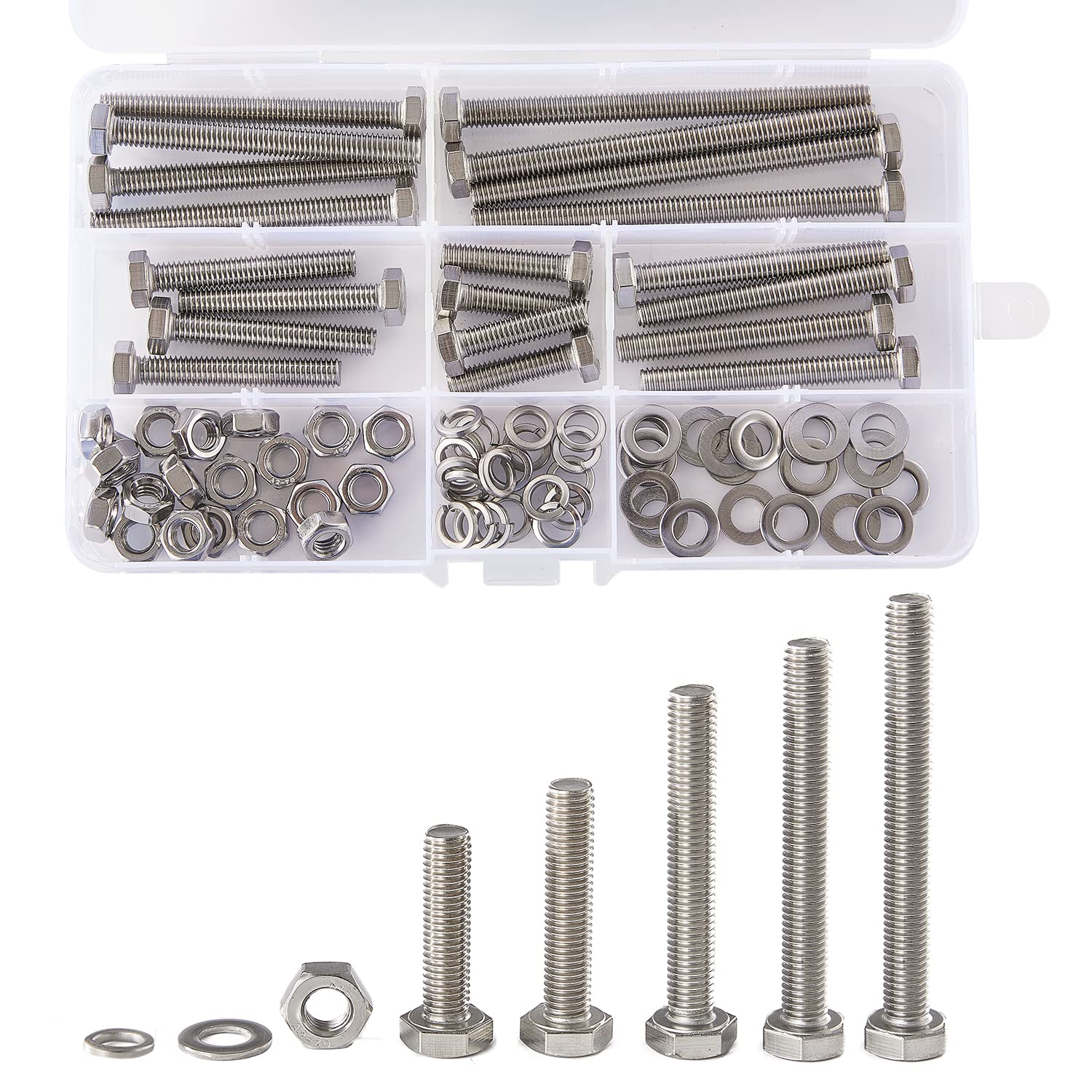 The material is made of high quality 304 stainless steel. They are known for their reliable rigidity and corrosion resistance. This type of steel is able to withstand drastic weather and temperature changes including placement Including extremely wet areas. Widely used in various precision machinery industries, classified instruments, meters, electronic products, household appliances, communication products and so on.Specifications: M4 x 10mm (20PCS) M4 x 16mm (15PCS) M4 x 20mm (15PCS) M4 x 25mm (15PCS) M4 x 30mm (15PCS) M4 Nuts (80PCS) M4 Flat Washers (80PCS) M4 Lock Washers (80PCS)M5 x 16mm (12PCS) M5 x 20mm (12PCS) M5 x 25mm (12PCS) M5 x 30mm (12PCS) M5 Nuts (48PCS) M5 Flat Washers (48PCS) M5 Lock Washers (48PCS)M6 x 16mm (8PCS) M6 x 20mm (8PCS) M6 x 30mm (8PCS) M6 x 40mm (8PCS) M6 Nuts (32PCS) M6 Flat Washers (32PCS) M6 Lock Washers (32PCS)Package Quantity: Total: 640 PCS, M4 M5 M6 Hex Head Bolts Nuts Flat Washers Lock Washers Assortment Set