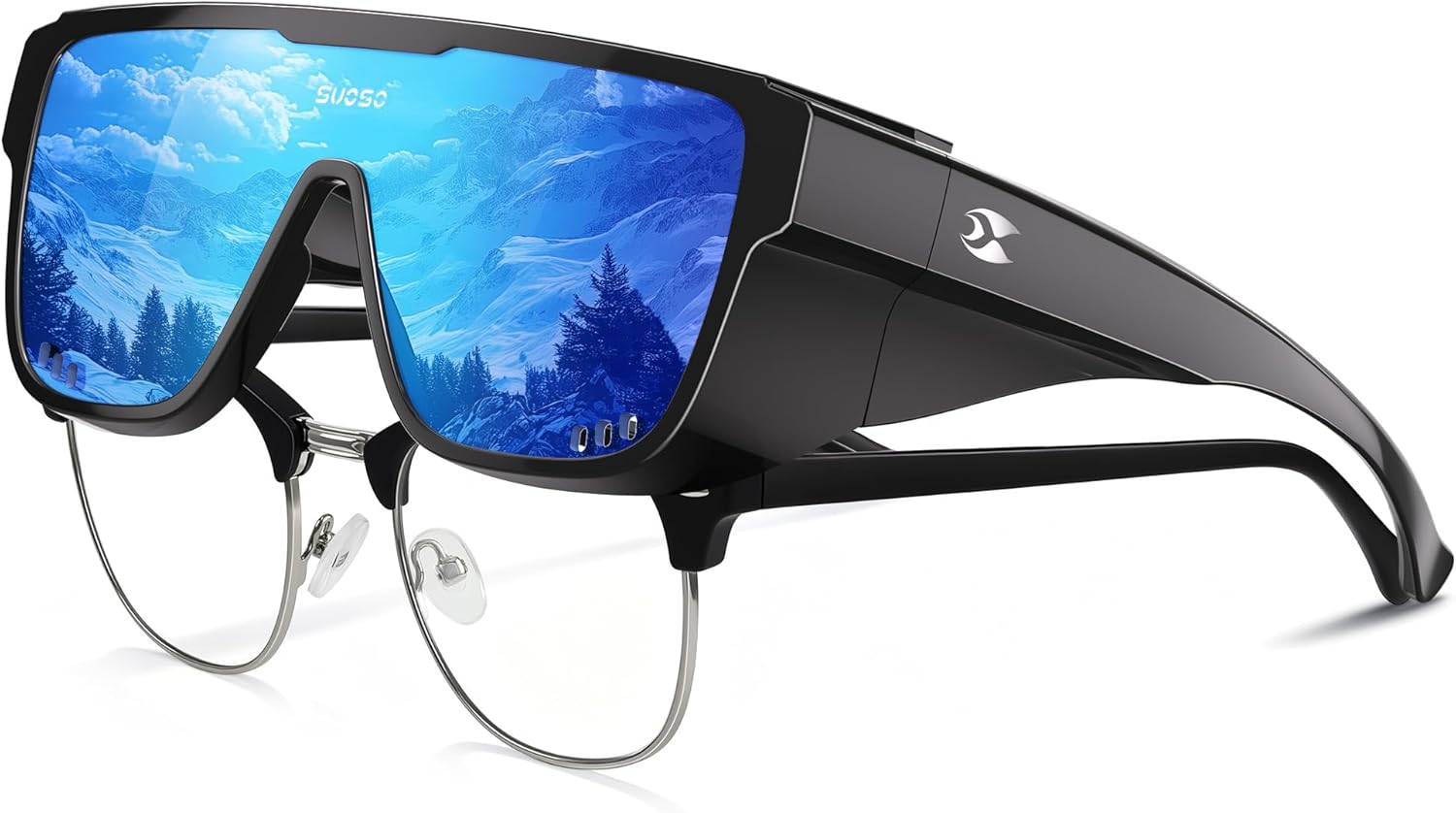 Perfectly Fitted with Sunglasses: These polarized sunglasses are designed for nearsighted or farsighted wearers. The temple grooves accommodate most frames, and the large frame fits snugly over existing glasses. They can also be worn on their own for contact lens wearers or those with normal vision.