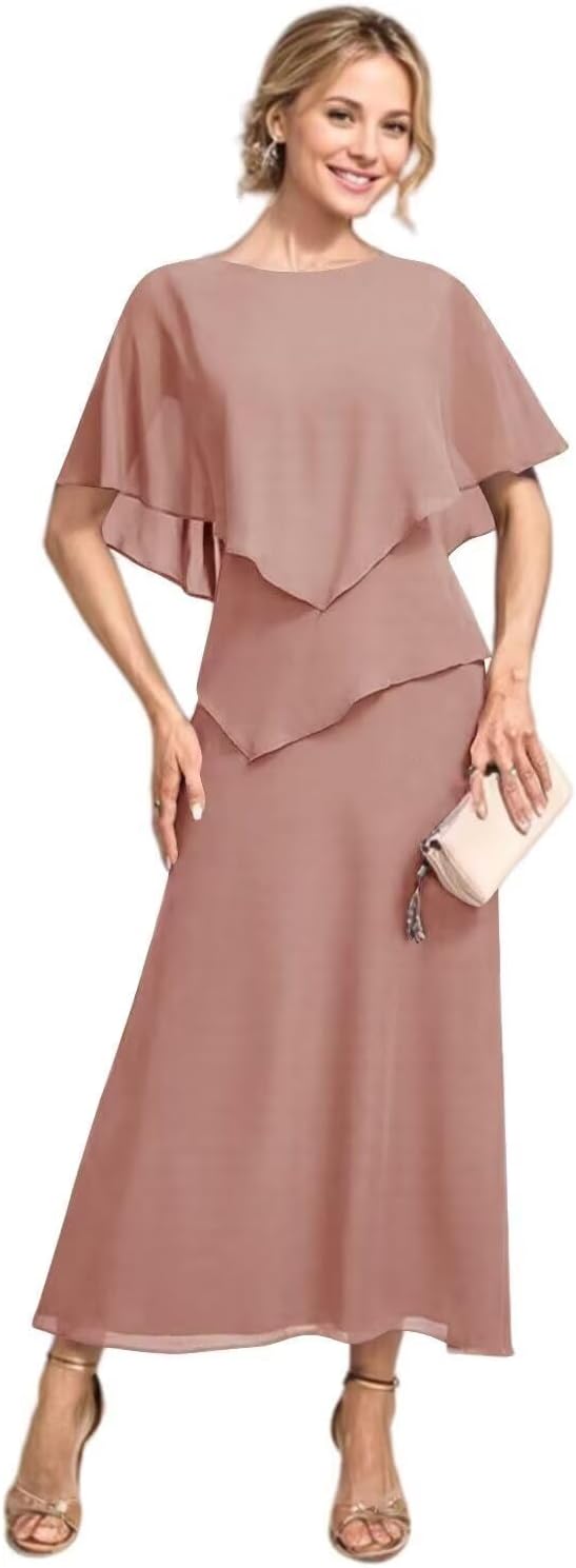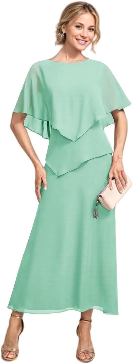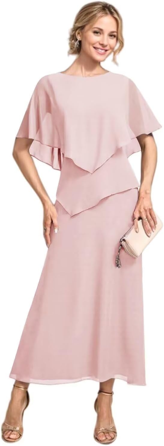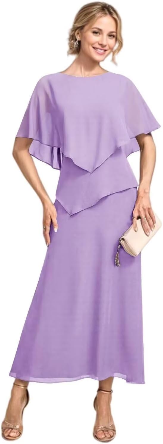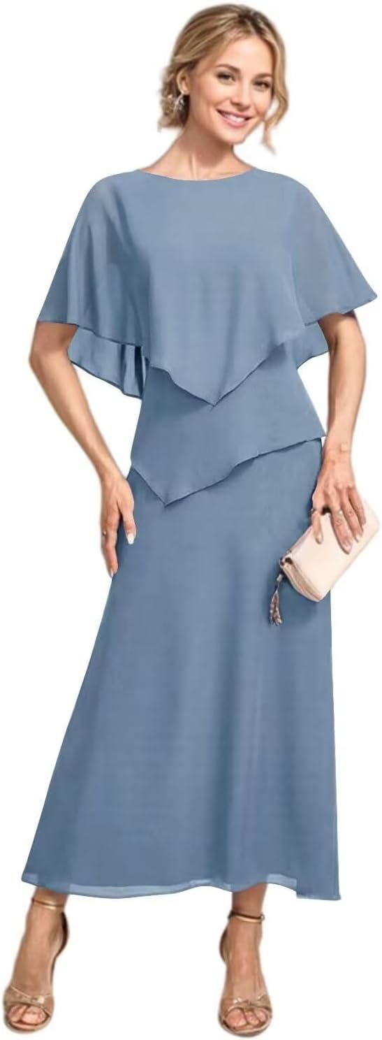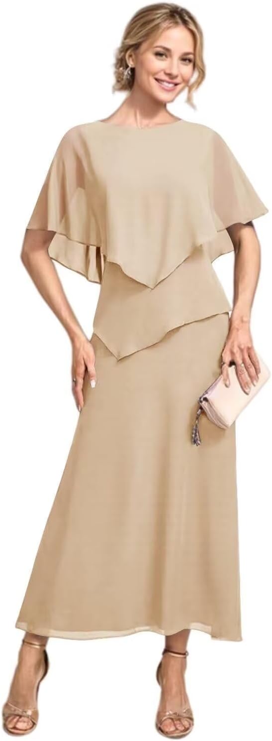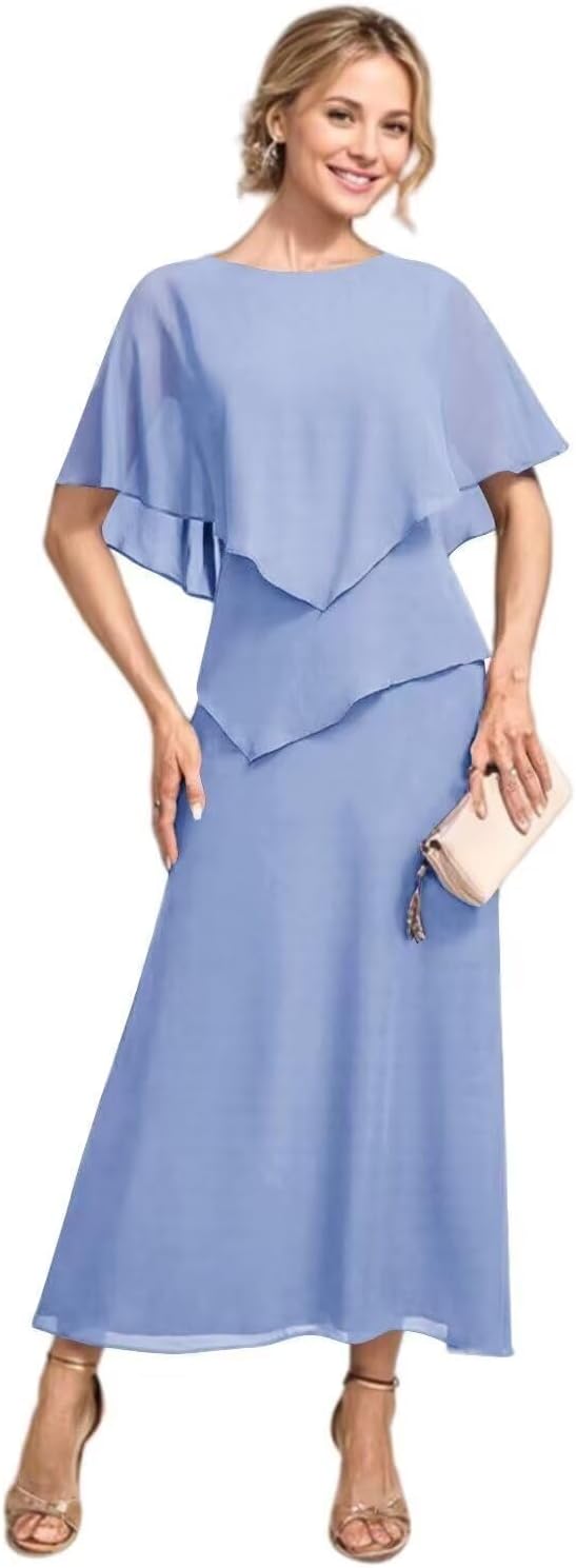 | Fabric Type | Flowy Chiffon Tea Length A Line Mother of The Bride Dress with Sleeves |