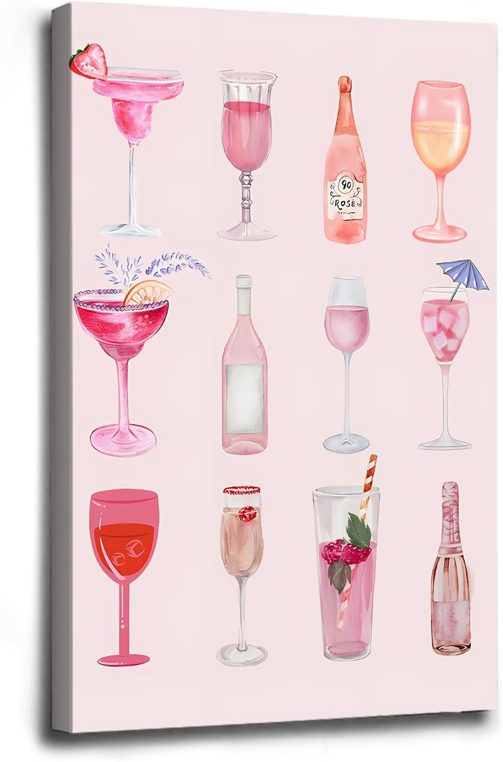"Fashionable Wall Art Bar Cart Decoration Want a stylish and funky bar cart decoration idea for your room or dorm? This stylish and trendy cocktail theme canvas wall art print poster is perfect for basement bar area, bedroom, living room or dorm room decoration with retro collage style. Every cool and fashionable wine lover will love and enjoy this special and elegant atmosphere in their room after putting this poster on the wall. Suitable for bedroom, basement bar corner, kitchen, bathroom, living room, dining room or dorm decoration. This could be a cool and fashionable gift for Christmas, Mother's Day, Father's Day, Thanksgiving holiday or birthday, housewarming, reunion party! *Canvas Only: You will receive a beautifully printed canvas with 1 inch white margin on the edge, so you can post, cut or frame it by yourself as needed. *Wrapped Canvas: We use professional equipment to stretch and fix the wrapped canvas on the wooden frame, and configure hooks and nails, you can hang it directly or frame it by yourself. *Framed : We configure a black metal frame, which looks more perfect and elegant, for your choice. Our Quality: 1. Use high-quality canvas to present exquisite art pictures. Every detail of the picture is perfectly restored, moisture-proof, dust-proof , and will not fade for a long time. 2. All our products are carefully checked and tightly packed before reaching you so that you receive perfect products. Material: thick canvas material, micro-spraying technology, high-definition quality Perfect gift choice! This stylish bar cart wall art set can be used for any occasion, whether for your own use or as a gift for friends and family! Please note: - The pictures shown are for demonstration purposes only and do not represent the actual size. Please measure your wall to purchase the right size. - Due to the different display effects of different monitors, the pictures will be slightly different from the actual products, please understand.